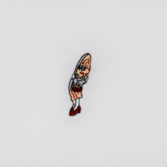 9.1oz/丸胴仕様の超極厚生地&ビッグシルエットの最上級グレードTシャツに、フロントにはワンポイント刺繍、バックにはシルクスクリーンプリント加工が入った至極の一品。